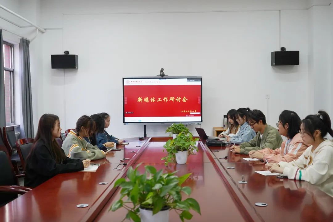 为进一步提高sunbet申搏官方网站融媒体中心成员的工作能力和宣传素养,推动sunbet申搏官方网站宣传工作高质量发展,sunbet申搏官方网站于4月8日在南区1号楼506教室举办新媒体工作研讨会。本次会议由融媒体中心负责人郭枥主持,校宣传部相关负责人主讲,院团委副书记张瑞琴出席,sunbet申搏官方网站融媒体中心全体成员共同参与。