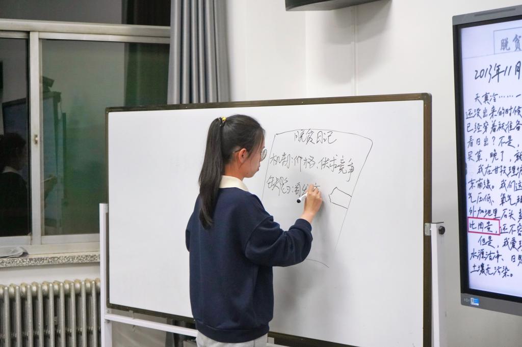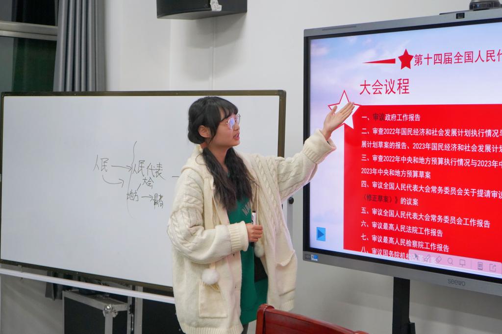 比赛中,参赛选手按照参赛要求,依次上台进行课堂教学展示。在展示过程中,参赛选手围绕教材,紧扣教学目标,层层深入,解决问题;巧抓板书,优化教学,展现思维过程;依托教学设备,增加课堂趣味性;贴合实践案例,将时事政治与教学有效结合,展现思政课堂特色……参赛同学姿态自然,声音洪亮,声情并茂,呈现了一堂堂丰富多彩的思政课,充分展现出sunbet申搏官方网站学子的思政授课技能与教学风采。