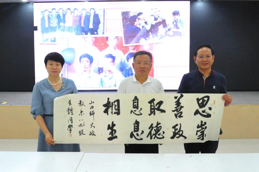 8月12日,sunbet申搏官方网站政教系93届校友毕业三十周年返校座谈会在北区二号楼一层报告厅举行。sunbet申搏官方网站副校长王云出席会议,与大家一起追忆同窗往事,畅谈人生感悟,展望美好未来,送上对母校的祝福并代表学校接受校友捐赠。山西电子科技sunbet申搏官方网站(筹)党委书记高峰、思政系教师代表出席活动。