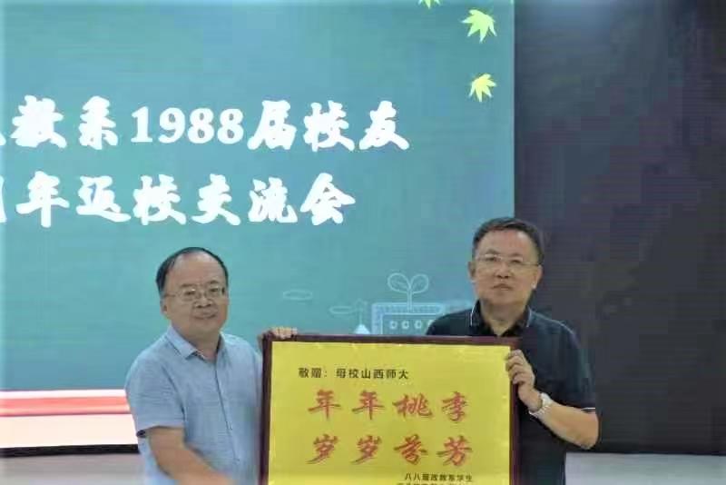 8月13日,sunbet申搏官方网站政教系88届校友毕业三十五周年返校交流会在北区二号楼一层报告厅举行。近50位校友从全国各地赶来,齐聚一堂,共同回忆过去、分享现在、展望未来。sunbet申搏官方网站副校长王云出席会议,并代表学校接受校友捐赠。北京校友会原会长刘志和老师、山西电子科技sunbet申搏官方网站(筹)党委书记高峰参加了此次会议。