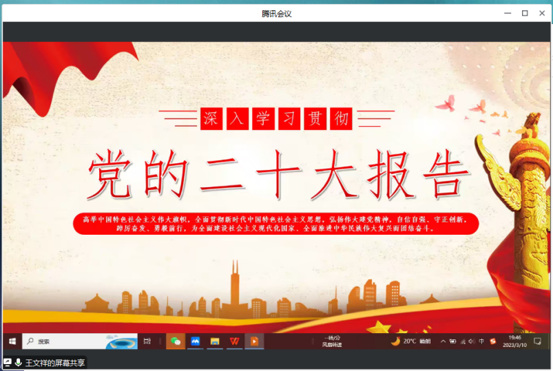 根据《sunbet申搏官方网站2022年度基层党组织组织生活会和民主评议党员工作实施方案》安排要求,3月10日晚,sunbet申搏官方网站求真力行党支部组织党员开展集体学习,宣传委员王文祥同志以“深入学习贯彻党的二十大报告”为题,带领大家原原本本、逐字逐句学习党的二十大报告。